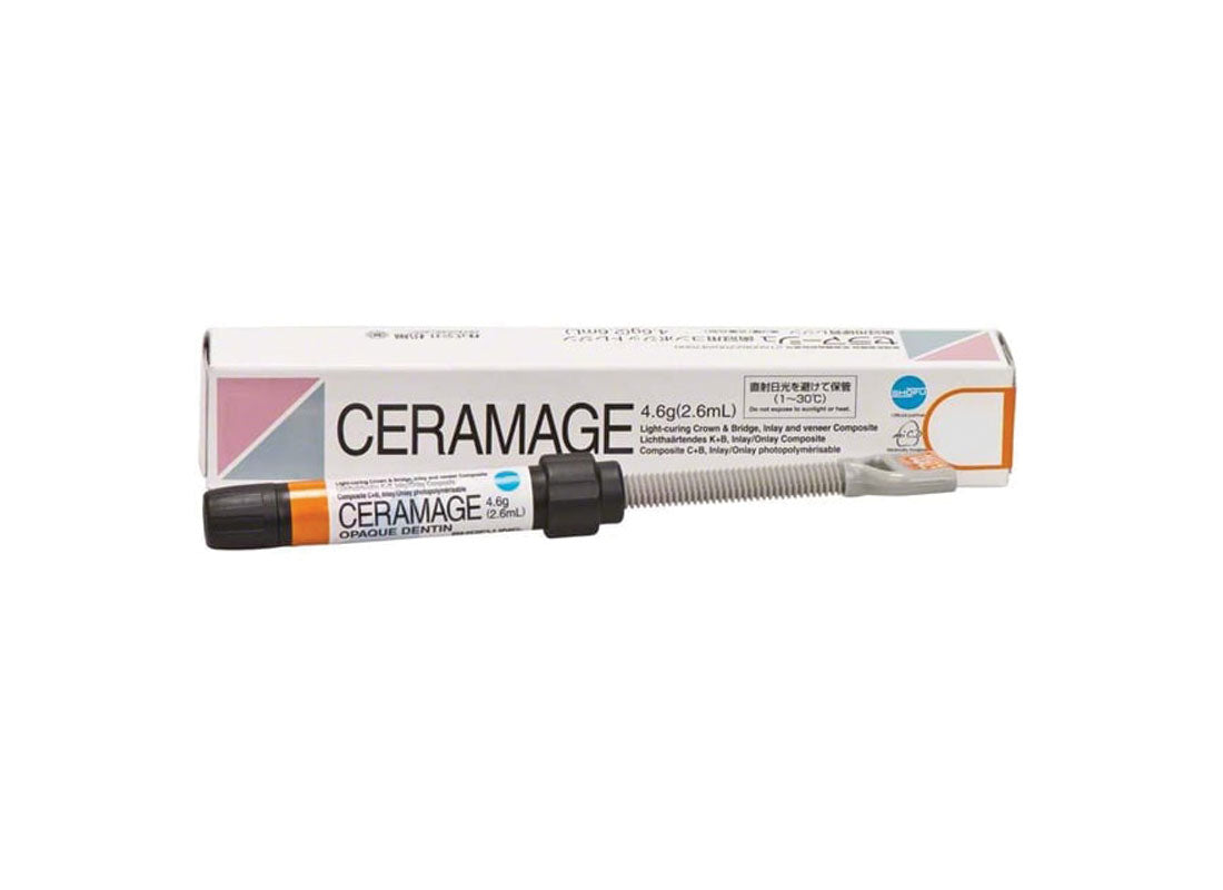 CERAMAGE Opaque Dentin with high filler content mimic deep dentin layers where the color of the opaque appears more dominant.